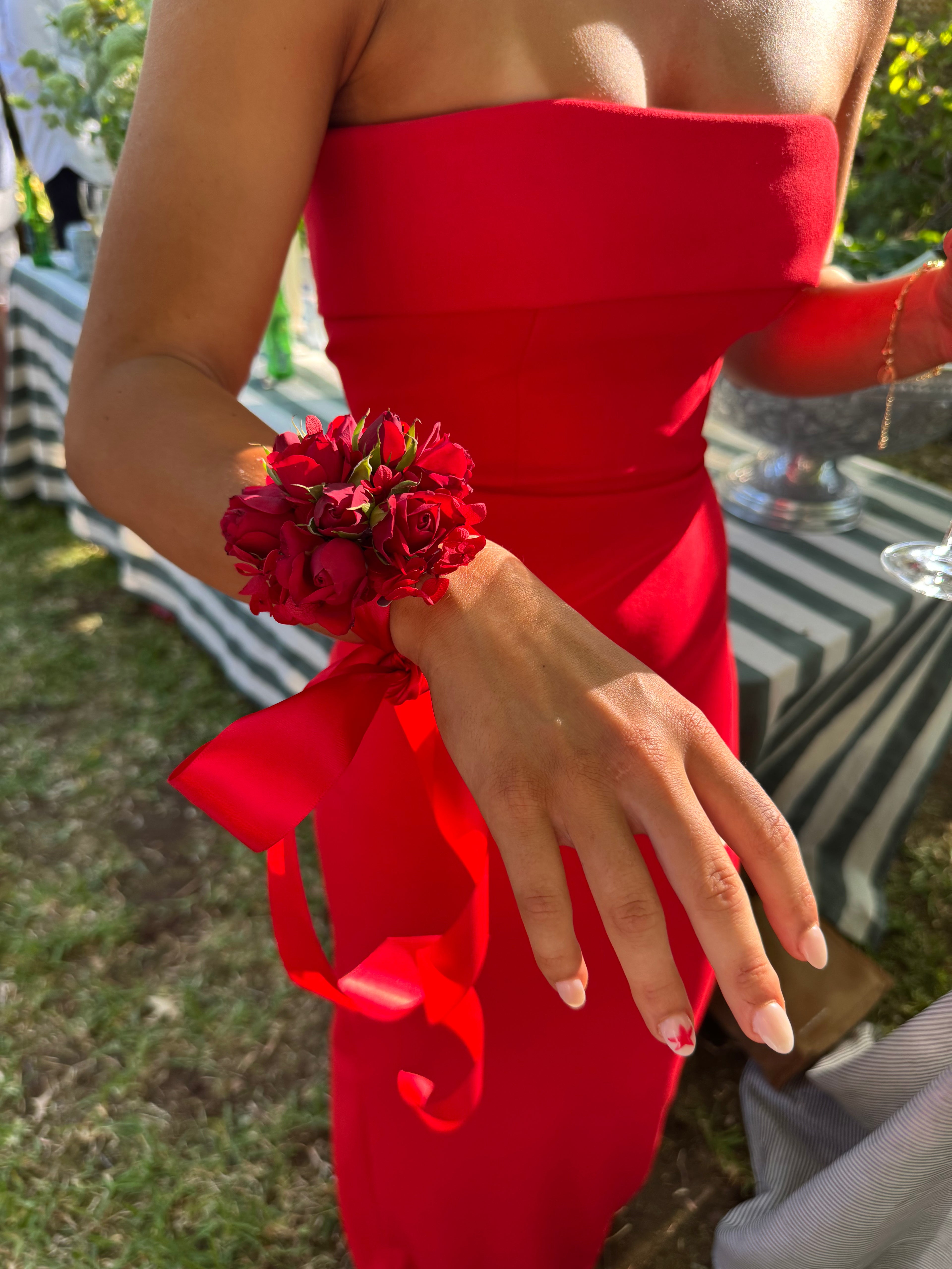 Uploading pictures of your outfits help guide us to choose the perfect blooms and matching ribbon for your wearables.